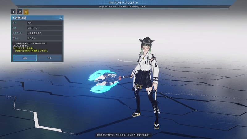 以前使っていたキャラクターは身長が168cmと当時の私の願望がダダ洩れになっていたので158cmに修正、髪型はブルプロのXionに近い短めのポニーテールの黒髪に緑色のメッシュを入れてます!この辺りはFF14のXionのキャラクリを反映しています!